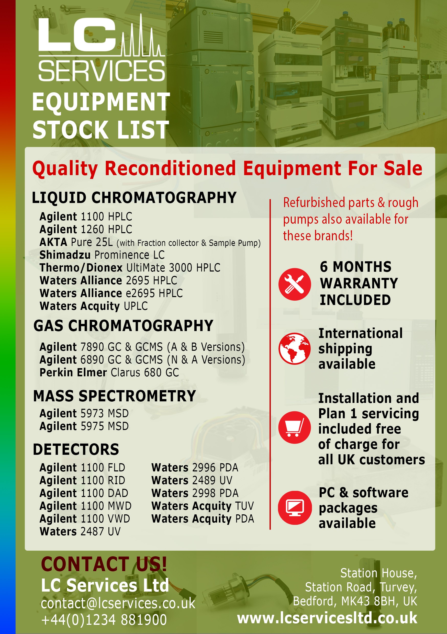 We also stock reconditioned parts suitable for a variety of chromatography and spectrometry lab equipment.